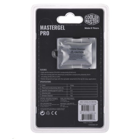Cooler Master termální pasta na CPU Master Gel Pro V2, tep. vodivost 8 W.m, 1.5ml, 4g, šedá