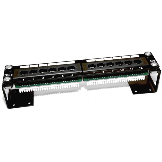 Patch panel 12 port Cat5E UTP pro 10" rozvaděče zářezové svorkovnice typu "DUAL" plřípadně s držákem možná montáž na zeď či atypického rozvaděče