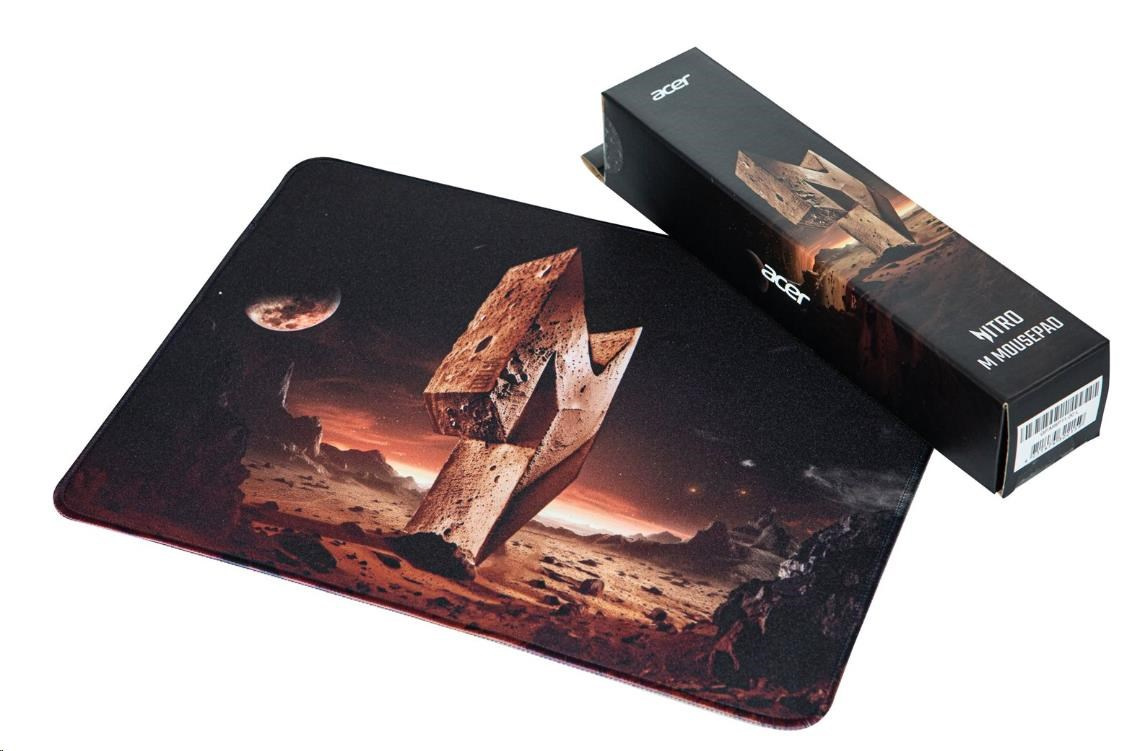 Acer Nitro Mousepad M, podložka pod myš, spodní gumová protiskluzová vrstva, horní vrstva polyester s potiskem, 350 x 260 x 3 mm, 189 g, Retail Pack.