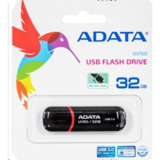 ADATA Flash Disk 32GB UV150, USB 3.1 Dash Drive (R:90/W:20 MB/s) černá