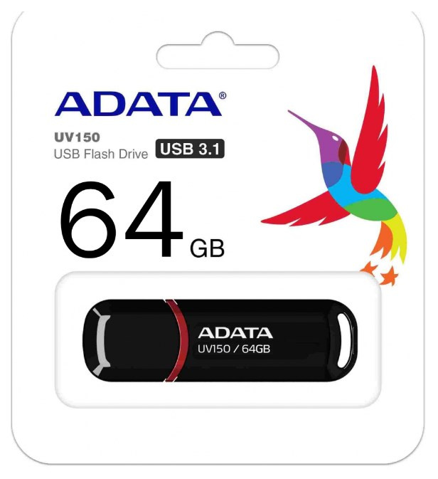 ADATA Flash Disk 64GB UV150, USB 3.1 Dash Drive (R:90/W:20 MB/s) černá