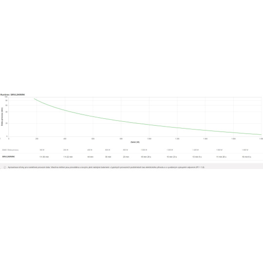 | Doba provozu pro zátěž WMin.–max.: 180-1800 W | 10min 6s |