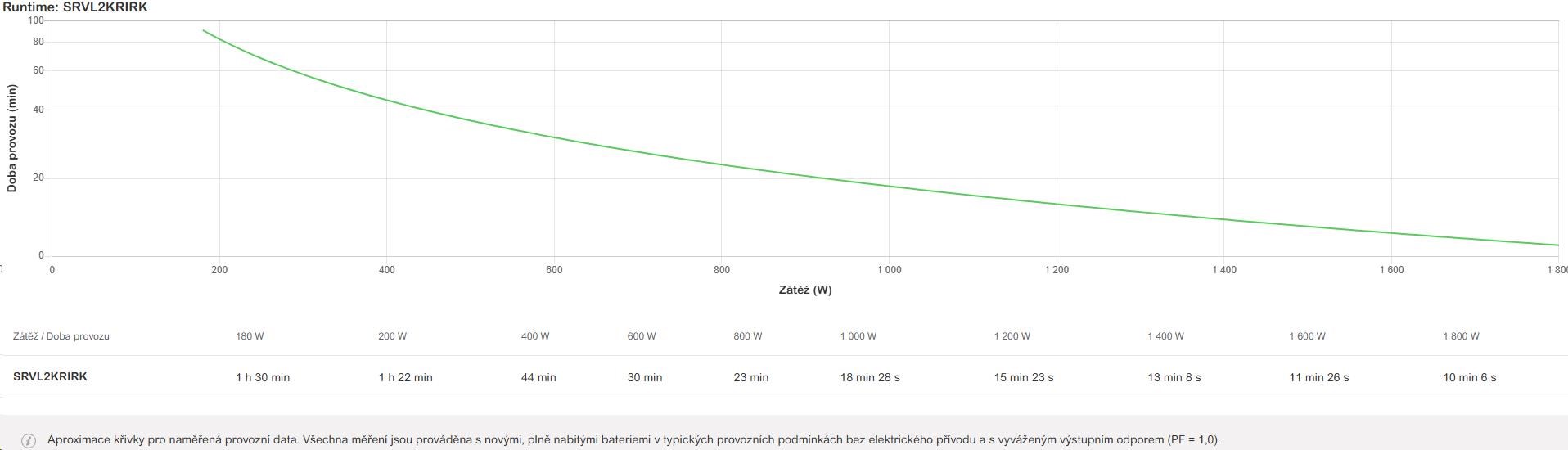 | Doba provozu pro zátěž WMin.–max.: 180-1800 W | 10min 6s |