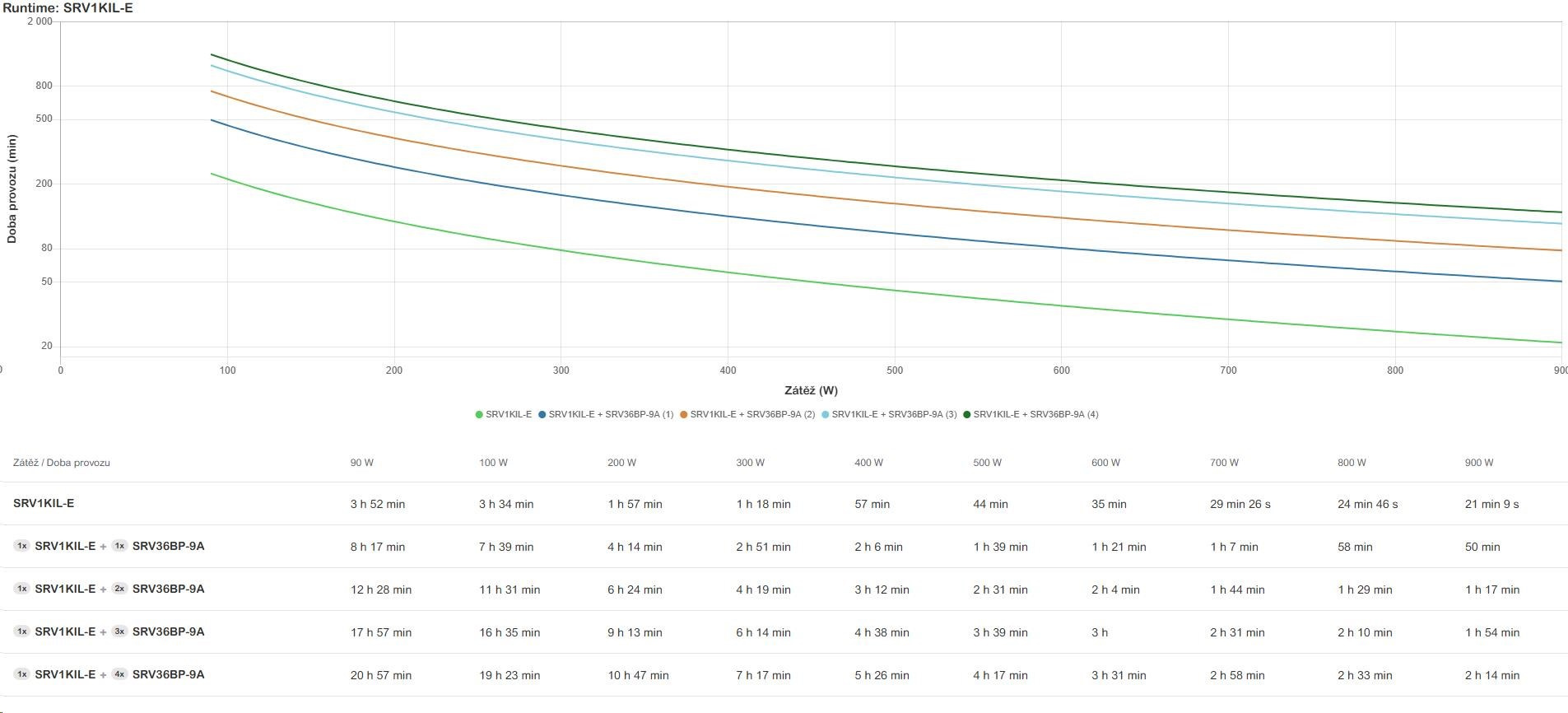 | Doba provozu pro zátěž WMin.–max.: 90-900 W | 21min 9s |