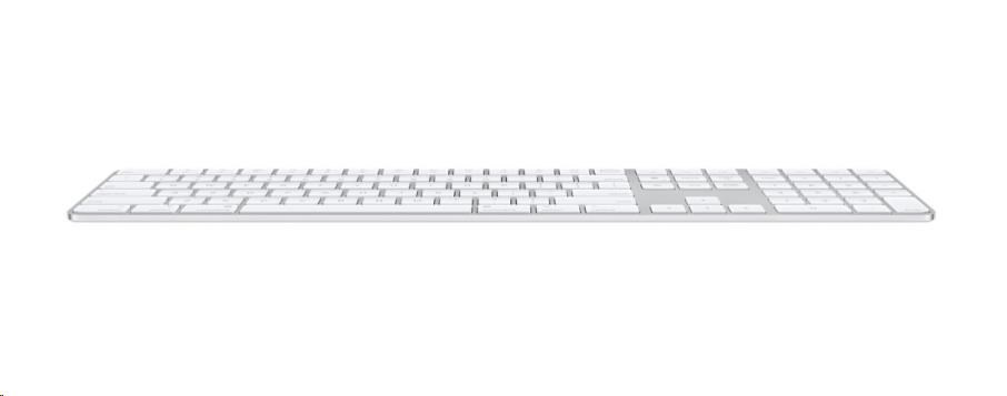 klávesnice • numerická • pro Mac • membránová • bezdrátová • nízkoprofilové klávesy • americká (mezinárodní) lokalizace kláves • Bluetooth a USB.