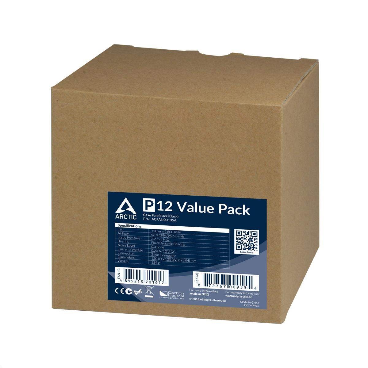 ARCTIC ventilátor P12 120mm, value pack (5ks), černá
