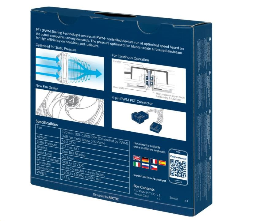 ARCTIC ventilátor P12 PWM PST CO 120mm, 4-pin, PWM, 12V
