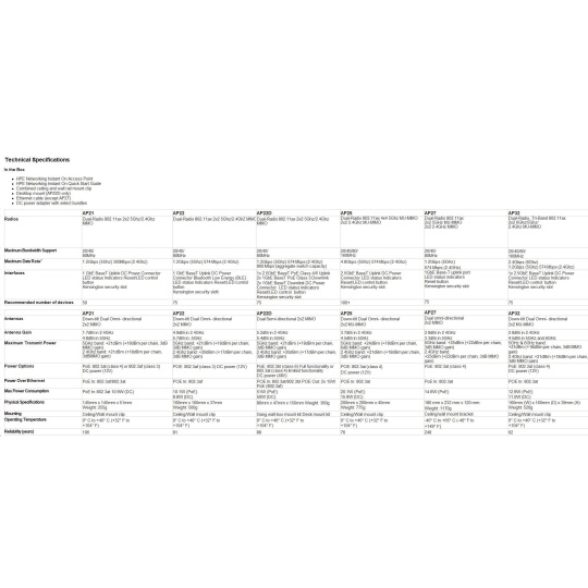 Features of the AP25 include orthogonal frequency-division multiple access (OFDMA), multi-user MIMO and target wake time (TWT). With up to 4 spatial streams (4SS) and 160MHz channel bandwidth (HE160), the AP25 provides groundbreaking wireless capabilities for businesses looking to boost perfor­mance and future-proof their networks.