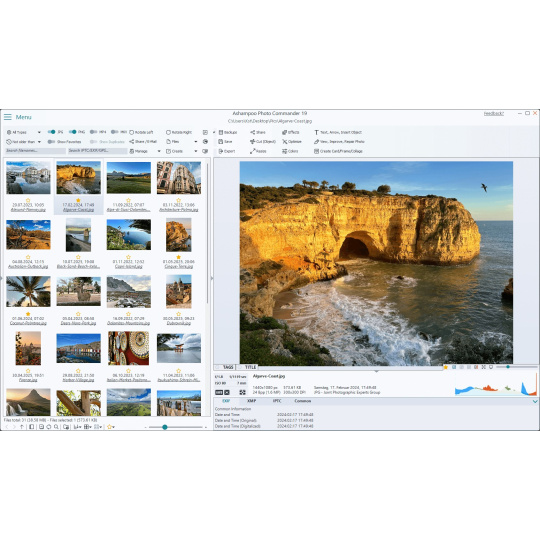 Před 20 lety byly krásné fotografie vzácností. Před 10 lety byla paměť vzácná. Dnes máme obojí – ale také máme skutečný souborový chaos díky stovkám souborů! Ashampoo Photo Commander nejenže promění chaos v úhledné sbírky fotografií, ale také promění dobré fotografie ve skvělé snímky a dokáže dokonce vytvářet koláže, blahopřání a prezentace. Převádějte své fotografie, a to i automaticky a dávkově, přidávejte vodoznaky a tříděte soubory podle umístění pro okamžitou vizuální jasnost. Photo Commander je pro vás komplexní řešení!