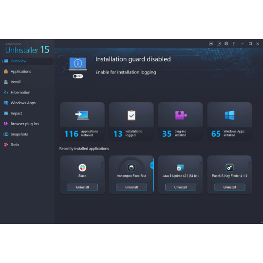 Nový strážce instalace na pozadí v programu Ashampoo UnInstaller 15 provádí analýzu instalace v reálném čase, která je až 10x rychlejší než dříve. Přesně detekuje začátek a konec instalace a lépe podporuje vnořené nebo vzácné typy instalací. Ať už zkoušíte nové programy nebo aktualizujete svůj oblíbený software, našemu hlídači nic neproklouzne, ať už jde o drobné nebo zásadní úpravy systému. Vyzkoušejte lepší výkon, přesnost a kompatibilitu!