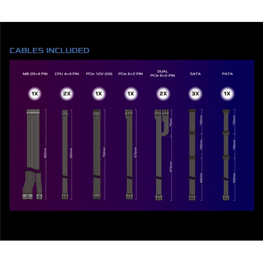 | Dueal PCIe 6+2 Pin Konektor | 2x / 2x (675 + 75 mm) |