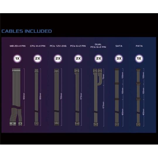 | Dueal PCIe 6+2 Pin Konektor | 2x / 2x (675 + 75 mm) |