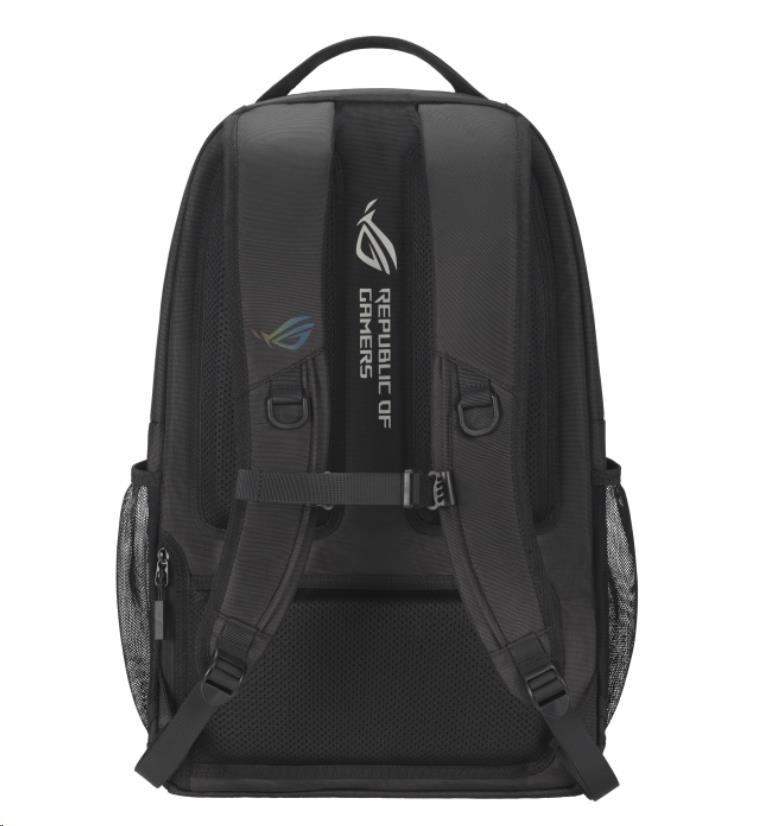 Objem 35 litrů s mnoha vnitřními přihrádkami a polstrovaným pouzdrem na notebook, do kterého se vejde až 18palcový notebook. Odvážný estetický vzhled brašny ROG umocňuje reflexní nápis cybertext. Vysoce odolný polyester 1260D je odolný proti poškrábání a vodě. Osobní věci bezpečně uložíte do skrytých zadních kapes.