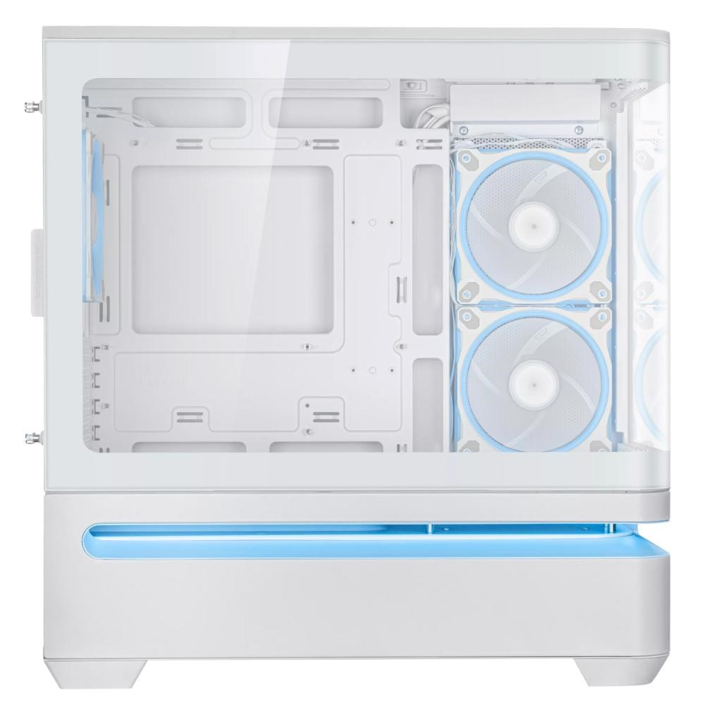 - Zakřivený panel z tvrzeného skla plynule přechází z přední strany na boční stranu a nabízí panoramatický výhled na komponenty z téměř každého úhlu.
