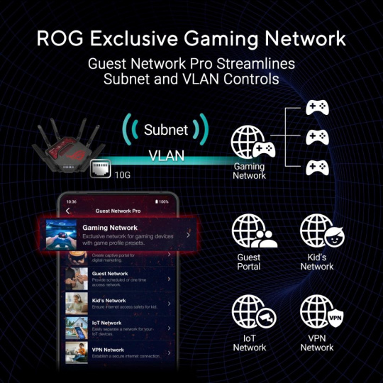 | Herní využití | Zrychlení hry / akcelerace Herní radar WTFast Mobilní herní režim Urychlovač zařízení ROG_First OpenNAT (herní profil) Herní port Herní síť |