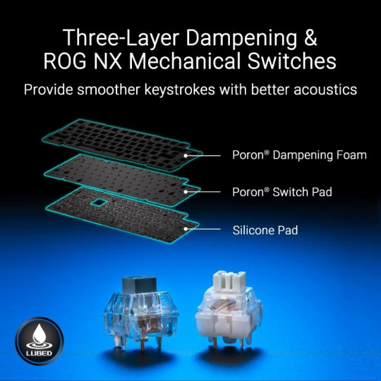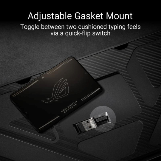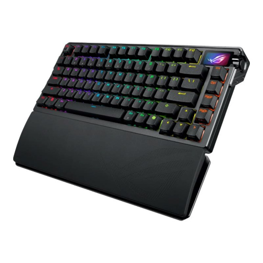 ROG Azoth Extreme je přizpůsobitelná 75% herní klávesnice s prémiovým šasi z hliníkové slitiny a kovovým rámem. Vyznačuje se rychlostí hlášení 8000 Hz s ROG Polling Rate Booster a více než 1600 hodin výdrže baterie v bezdrátovém režimu ROG SpeedNova 2,4 GHz. Vylepšený OLED dotykový displej a třícestný knoflík umožňují monitorování systému a rychlé nastavení. Polohovací deska z uhlíkových vláken zajišťuje ostrý zvuk při psaní, zatímco tři tlumicí vrstvy absorbují vibrace. Nastavitelný držák těsnění s pádlovým spínačem nabízí dvě možnosti psaní.