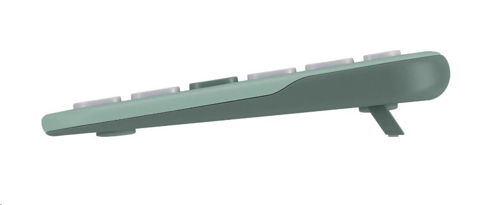 Klávesnice má nůžkové klávesy se zdvihem 1,6 mm a dvouúrovňové nastavitelné nožičky pro pohodlné psaní. Protihluková pěnová vrstva zajišťuje nízkou hlučnost (méně než 50 dB) při stisku kláves. Využívá technologii Bluetooth Low Energy (BLE) 5.0 pro rychlou odezvu a úsporný provoz na nové AAA baterie s až dvouletou životností. Připojení ke třem zařízením a snadné přepínání mezi nimi.
