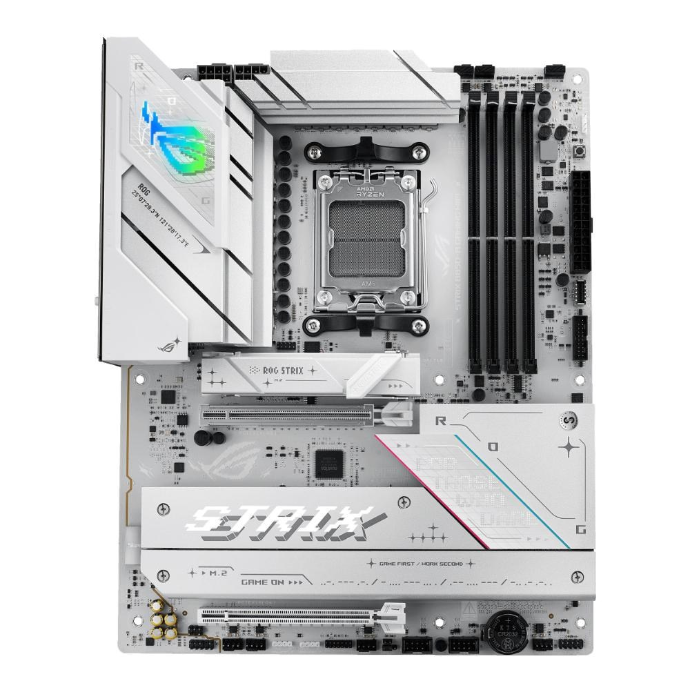 Elevate your build with the ROG Strix B850-A Gaming WiFi. Featuring a sleek white PCB and support for AMD Ryzen™ 9000 Series processors, this motherboard delivers the power and connectivity needed for advanced AI applications. With DDR5 support, full PCIe 5.0 capabilities, USB 20Gbps port, and WiFi 7, it's the ultimate blend of style and performance.