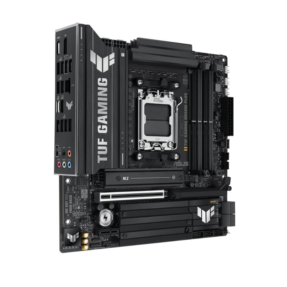 ASUS TUF GAMING B850M-PLUS takes all the essential elements of the latest AMD Ryzen™ processors and combines them with game-ready features and proven durability. Engineered with military-grade components, an upgraded power solution and a comprehensive cooling system, this motherboard goes beyond expectations with rock-solid and stable performance for marathon gaming. TUF GAMING motherboards also undergo rigorous endurance testing to ensure that they can handle conditions where others may fail. This platform delivers the power and connectivity that advanced AI PC applications demand.