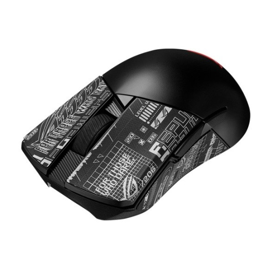 - Protiskluzová páska na rukojeť myši se vzorem ROG: Poskytuje uživatelům bezpečnější uchopení a přidaný kousek šmrncu