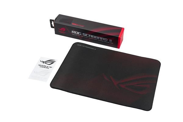 | Contents | 1 x ROG SCABBARD II MEDIUM gaming mousepad 1 x ROG logo sticker |