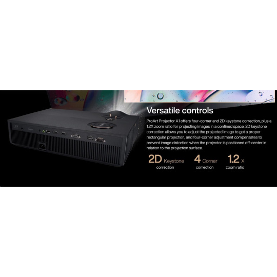 ASUS ProArt A1 LED professional projector- World’s first Calman Verified projector,? E < 2, 98% sRGB and Rec. 709, FHD (1920 x 1080), 3000 lumens, Four corner and 2D keystone correction, 1.2X zoom ratio, wireless mirroring