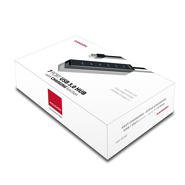 AXAGON HUE-SA7BP, 7x USB 3.0 ALU CHARGING hub, vč. AC adaptéru, kabel USB-A 40cm