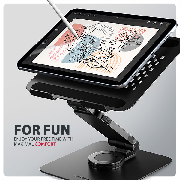 AXAGON STND-LRB, hliníkový stojan pro notebooky 10"-17.3" s nastavitelnou výškou, úhlem a 360° rotací, černý