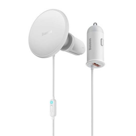SUCX040002 - Baseus CW01 magnetický držák do auta s bezdrátovým nabíjením (do ventilační mřížky) s USB-A nabíjecím adaptérem 15W+25W bílá