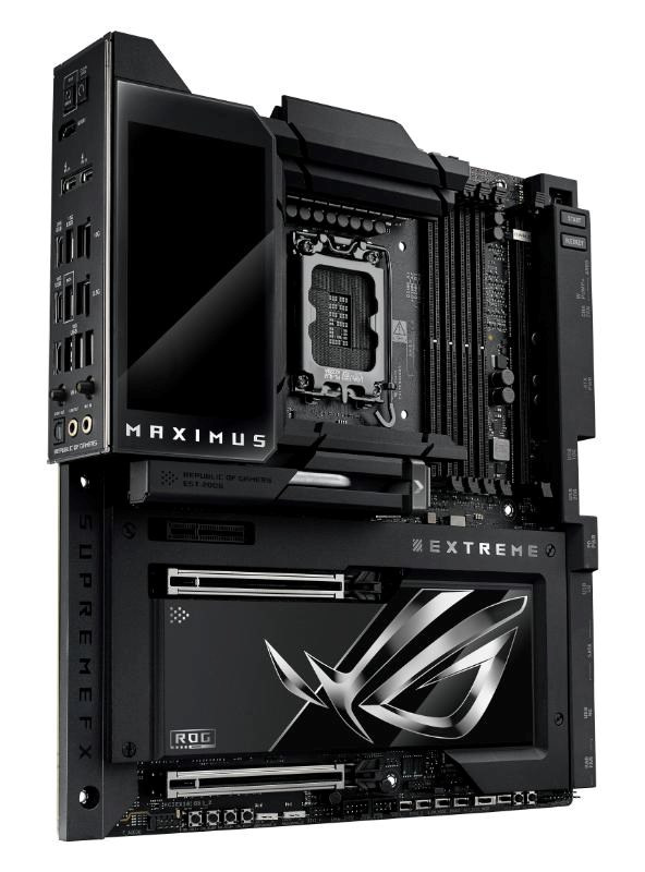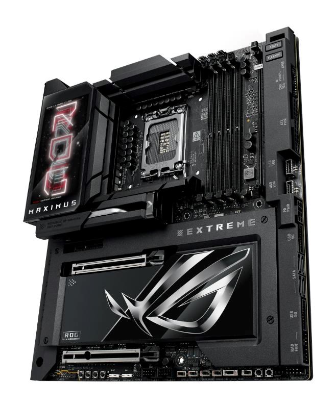 The ROG Maximus Z890 Extreme is the ultimate expression of cutting-edge motherboard technology and performance. Discover the upper limits of Intel® Core™ Ultra Series 2 processors, DDR5 modules, PCIe® 5.0 graphics cards, NVMe storage, USB connectivity, Thunderbolt™ functionality and more – all wrapped up in a sleek package featuring a full-color 5-inch long LCD screen that can deliver vibrant imagery or live system stats to suit your personal tastes.