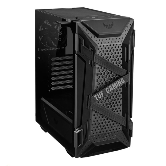 ASUS TUF Gaming GT301 ATX mid-tower compact case with tempered glass side panel, honeycomb front panel, 120mm AURA Addressable RGB fan, headphone hanger and 360mm radiator support.