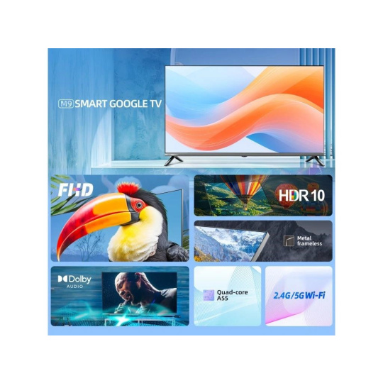 CHiQ 40“ L40M9E, metalická bezrámečková Smart Google TV s HDR10, HLG, obrazovkou s Full HD s rozlišením 1920 x 1080 pixelů, Dolby Audio a vylepšeným zvukem dbx-tv.
