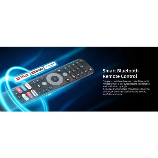 Také dálkový ovladač je vyrobený z materiálů nejvyšší kvality. Zajistí rychlou a příjemnou komunikaci s televizorem. Vyhrazená tlačítka na Netflixu, Youtube, Google Play nebo Prime Video vás rychle přivedou k obsahu, který hledáte.