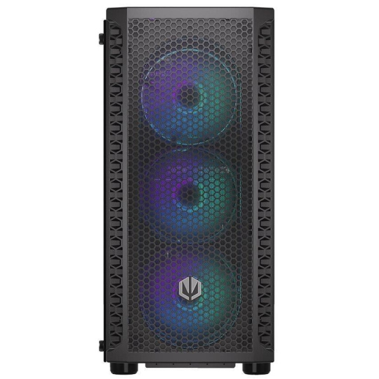 Skříň formátu Middle Tower s průhlednou bočnicí z tvrzeného skla nabízí dvě 2,5" pozice pro SSD disky a dvě 3,5" pozice pro pevné disky. Na horní části se nachází dva USB 3.0 porty, sluchátkový výstup a audio vstup pro mikrofon. Vybavena je čtyřmi 120 mm ventilátory s ARGB podsvícením, které spolu s perforovaným čelním panelem zajišťují dostatečné proudění vzduchu. Důmyslné řešení umožňuje pohodlné umístění až 360 mm dlouhého výměníku vodního chlazení na přední straně. Ve skříni je dostatek prostoru pro chladič CPU do výšky až 161 mm a grafickou kartu o délce až 350 mm. Dodávána je bez zdroje. Součástí je také sada prachových filtrů.