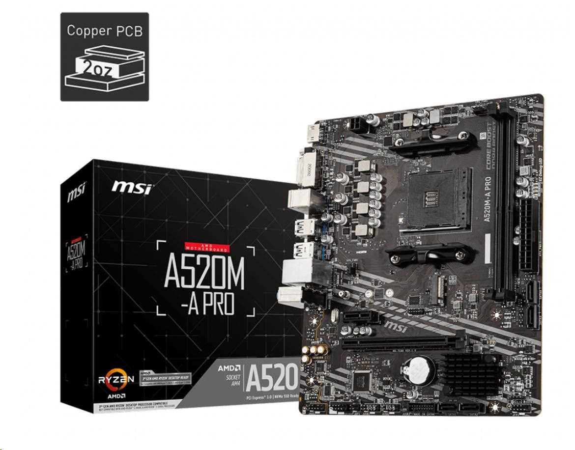 BAZAR - MSI MB Sc AM4 A520M-A PRO, AMD A520, 2xDDR4, m-ATX - Po opravě (Bez příšlušenství)