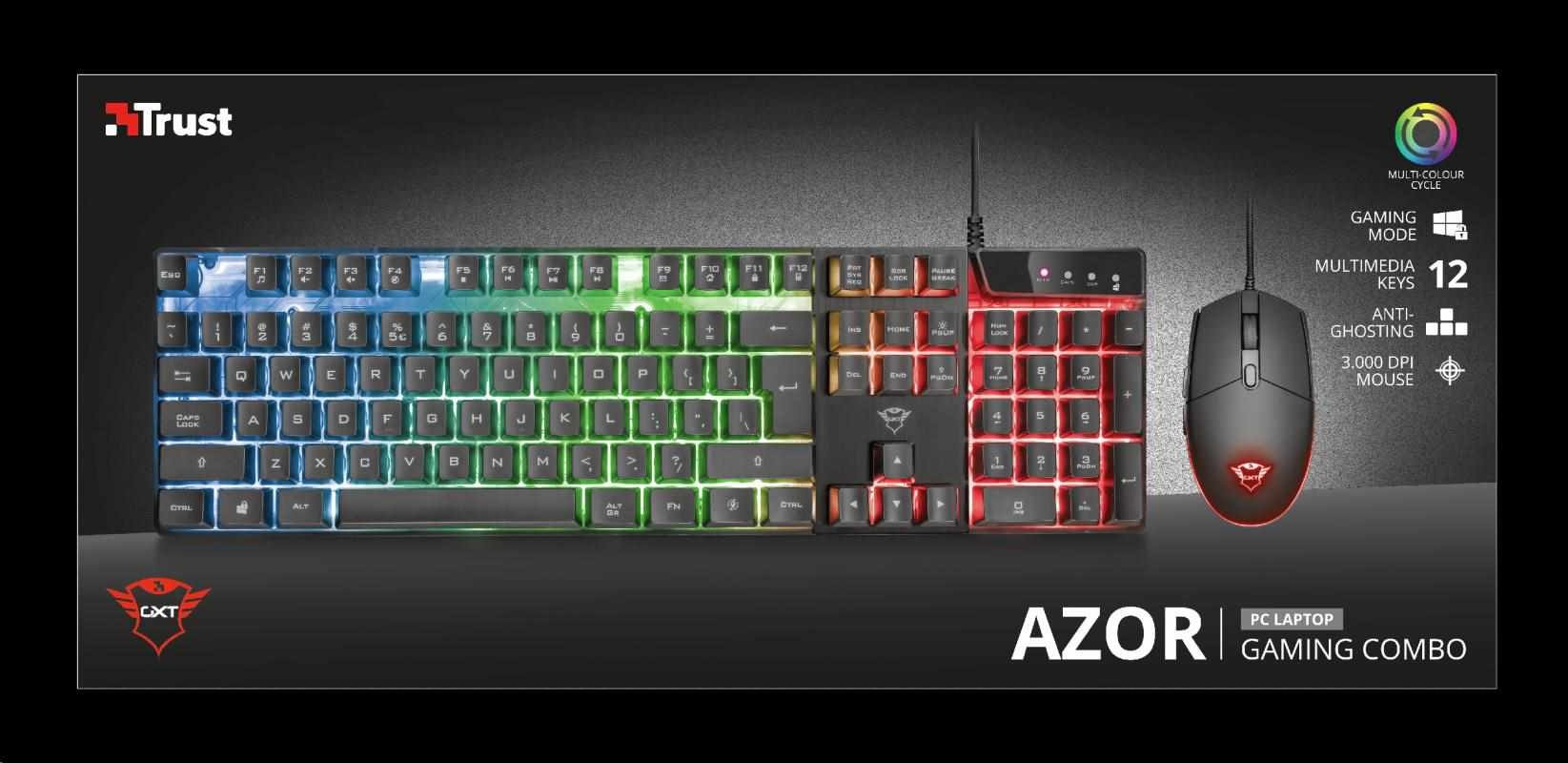 BAZAR - TRUST set klávesnice + myš GXT 838 Azor Gaming Combo CZ/SK - poškozený obal