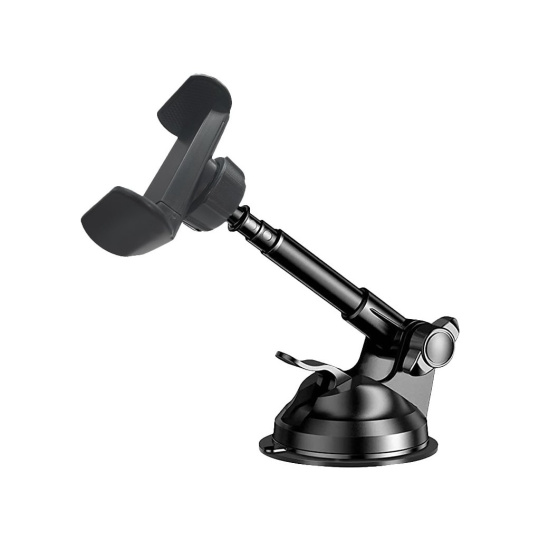 Univerzální držák v elegantním černém provedení je díky roztahovacím úchytům kompatibilní s každým zařízením s hloubkou 5,8 mm až 8,5 mm. Disponuje teleskopickou částí, která umožňuje polohování o 360 °. Instalace je možná na čelní sklo automobilu..