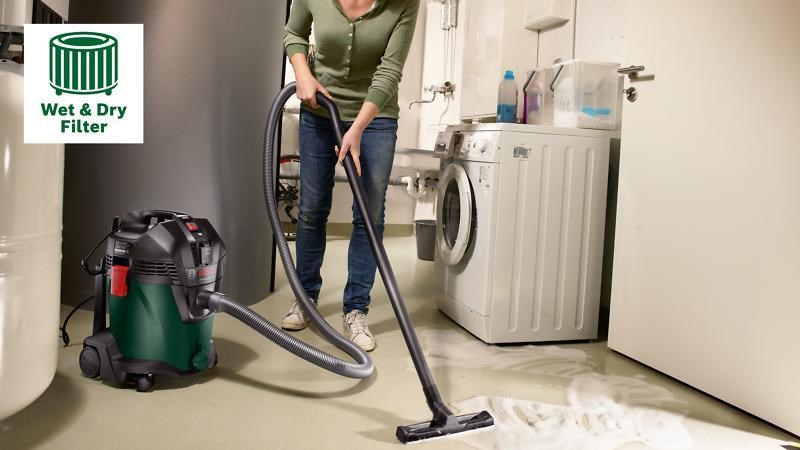 Vestavěná filtrová vložka umožňuje suché i mokré sání bez nutnosti výměny filtru.