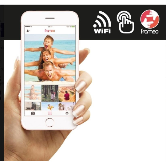 WiFi digitální fotorámeček s úhlopříčkou 15,6", rozlišení 1920x1080px, 16:9 IPS, přehrávání JPEG/MP3/Video, 8GB interní paněť, aplikace FRAMEO (Android/iOS, FREE) pro zasílání obrázků a videí z telefonu, G-senzor pro h/v pozici, micro SDHC slot, micro USB, černý. WLAN modul 802.11 b/g/n, opěrka na stůl, jednoduchá obsluha a nastavení pomocí bezplatné aplikace FRAMEO, ideální pro aktualizaci obsahu a nastavení rámečku z telefonu doma i na cestách, možnost horizontálního i vertikálního provozu, vnitřní paměť pro až 999 obrázků, maximální doba pro video 15s, , micro SD karty do 32GB. Rozměry 405x245x23mm, hmotnost 1390g, síťový zdroj 5V/2A.