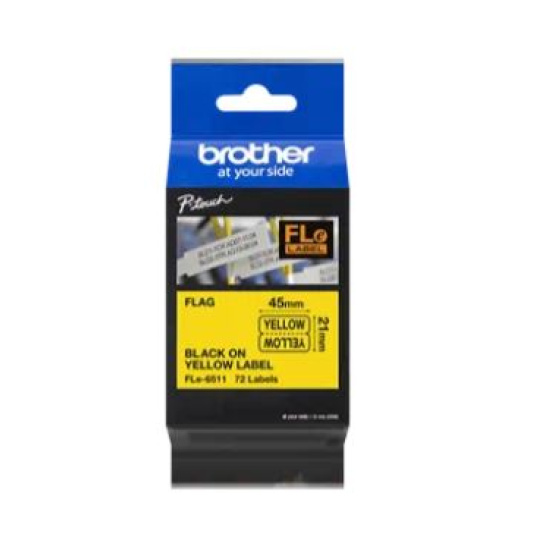 BROTHER FLe-6511 předřezané štítky - černá na žluté, 21 mm šířka