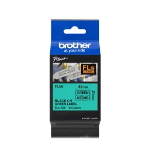 BROTHER FLe-7511 předřezané štítky - černá na zelené, 21 mm šířka