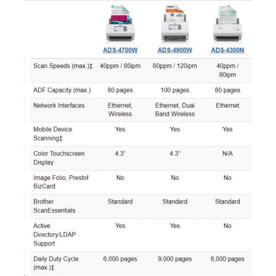 BROTHER skener ADS-4500W DUALSKEN A4 35ppm/70dual 600x600 60ADF USB LAN WIFI - display 7.1cm