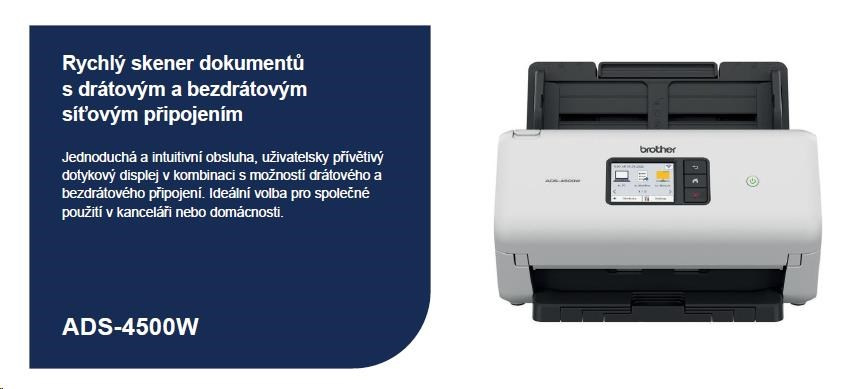 BROTHER skener ADS-4500W DUALSKEN A4 35ppm/70dual 600x600 60ADF USB LAN WIFI - display 7.1cm