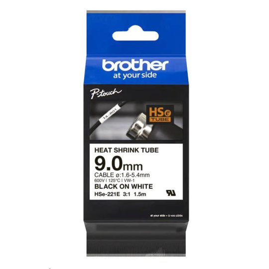 BROTHER smršťovací bužírka - HSE-221E bílá pro E300VP H300 H500 E550 P700 P750 D800 P900 P950 - 9,0 mm/ 1,6-5,4 / 3:1