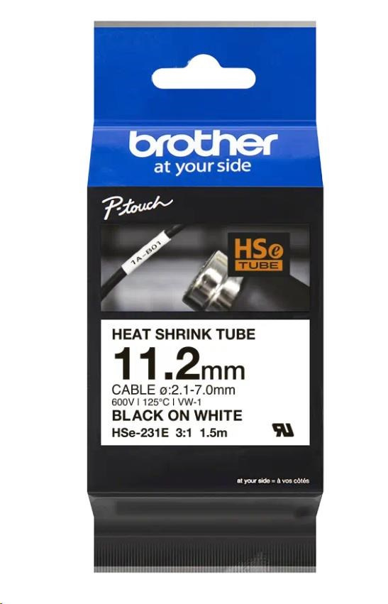 BROTHER smršťovací bužírka - HSE-231E bílá pro E300VP H300 H500 E550 P700 P750 D800 P900 P950 - 11,2mm / 2,1-7mm / 3:1
