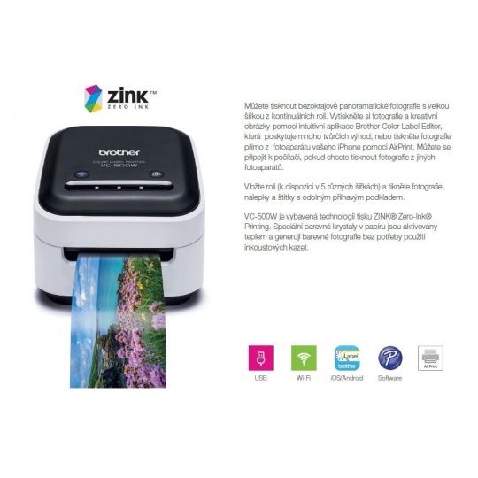 BROTHER tiskárna štítků FOTO - VC500W - WIFI, USB, bez potřeby inkoustu, speciální spotřebák / plnobarevná role