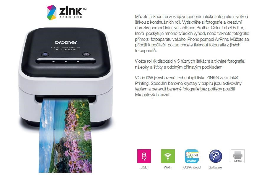 BROTHER tiskárna štítků FOTO - VC500W - WIFI, USB, bez potřeby inkoustu, speciální spotřebák / plnobarevná role