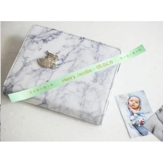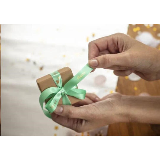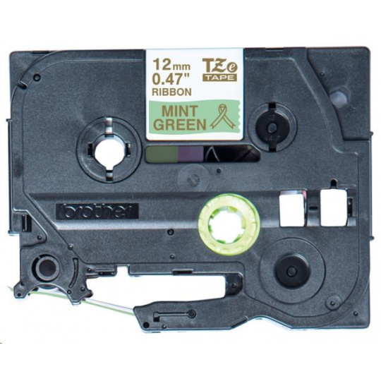 BROTHER TZE-RM34 - kazeta TZ šířky 12mm, TEXTILNÍ páska 4m- pro tvorbu dárků - NELEPÍCÍ - MÁTOVÁ PÁSKA ZLATÝ POTISK gold