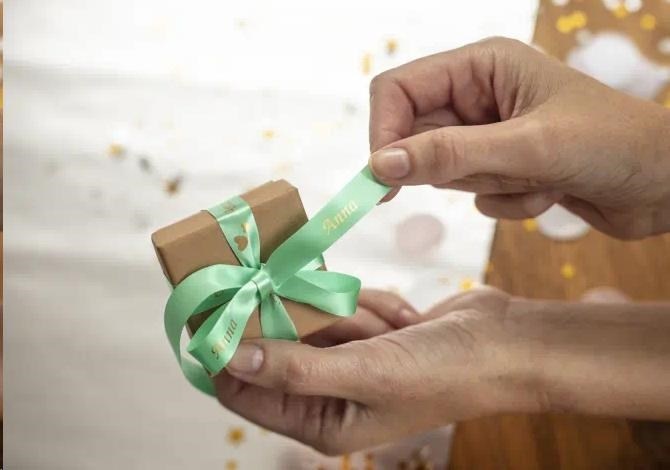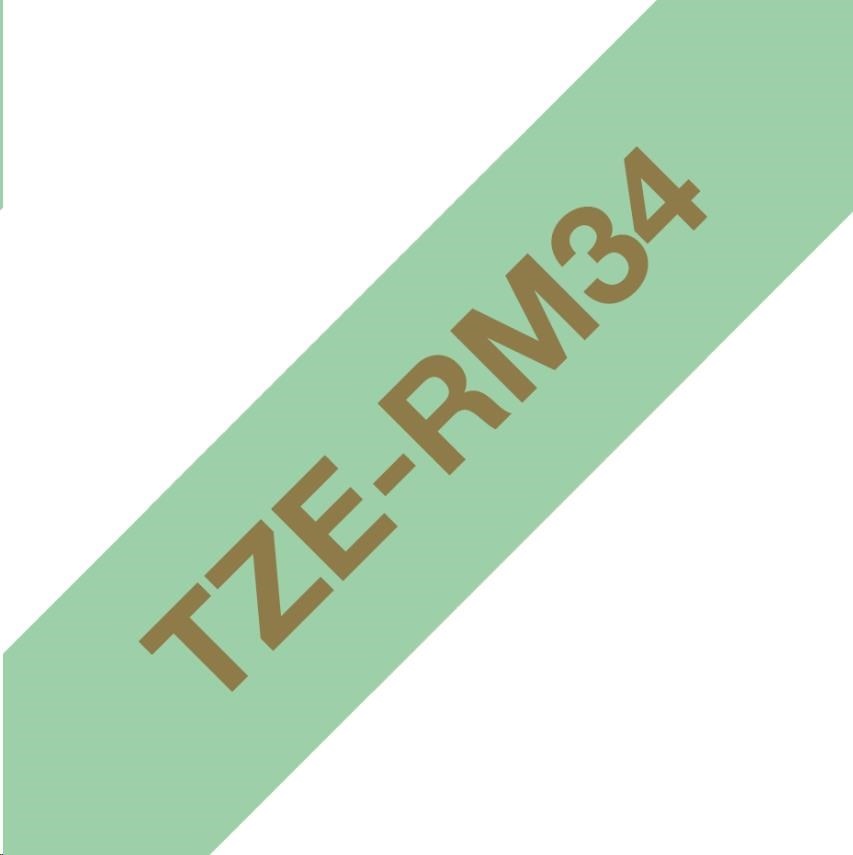 BROTHER TZE-RM34 - kazeta TZ šířky 12mm, TEXTILNÍ páska 4m- pro tvorbu dárků - NELEPÍCÍ - MÁTOVÁ PÁSKA ZLATÝ POTISK gold