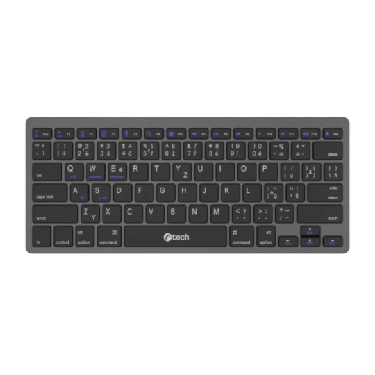 Bezdrátová klávesnice C-TECH KB-120S je navržena s důrazem na moderní styl, maximální pohodlí při psaní a širokou kompatibilitu napříč zařízeními. Díky svému tenkému (thin) designu působí elegantně a minimalisticky, zároveň je však velmi praktická jak pro práci u stolu, tak pro mobilní použití s notebookem, tabletem či chytrým telefonem.